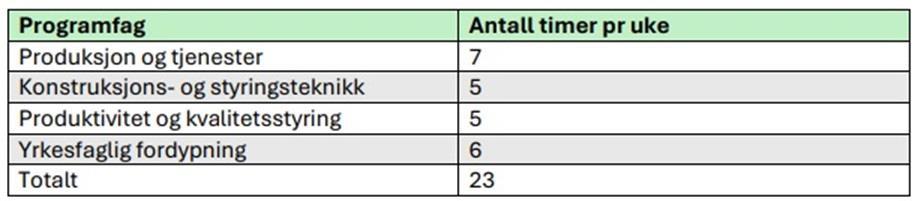 Du har 35 timer opplæring per uke både i fellesfag og programfag.
